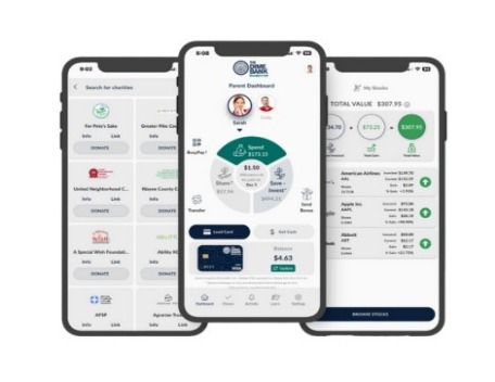 The app is a hands-on money management platform for kids and teens. It helps to teach them how to save, donate, spend and invest real money they earn or given.